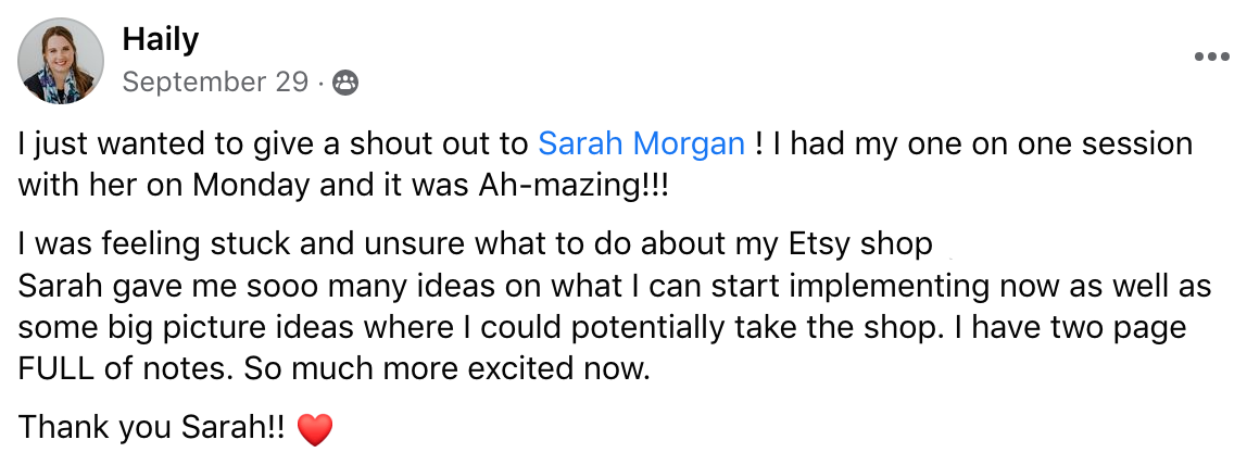“Sarah came up with a sales page I'm proud of. I get compliments on it often; more importantly, it converts better than previous pages I had made.